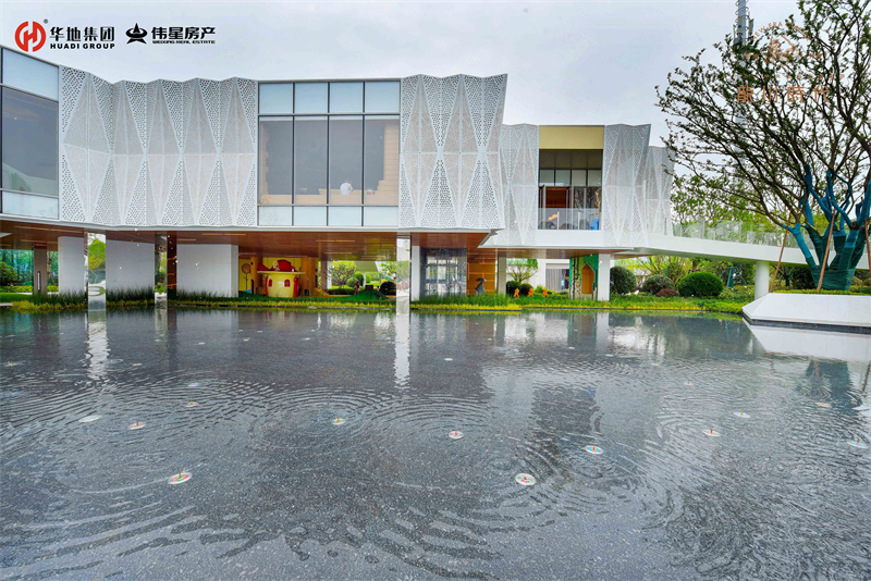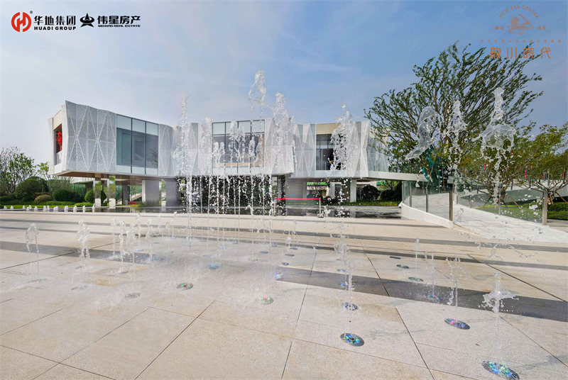 緩緩步入美好生活館前廣場(chǎng),依次映入眼簾的就是懸浮建筑體、鏡面水景、旱噴設(shè)計(jì)、自然綠景和特色鋪裝,從低到高,從現(xiàn)實(shí)到夢(mèng)幻,組成五維立體視覺。自然的留白,建筑的低語(yǔ),讓人流連忘返。
