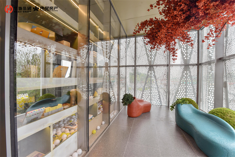 整個(gè)營(yíng)銷中心以極具特色的丹霞地貌為色彩靈感。美學(xué)藝術(shù)、潮流引領(lǐng)、年輕生態(tài)、社交互動(dòng)四大理念交織,一座“峽谷咖啡廳”,氤氳美好生活??Х?、書店、座談、游趣……讓建筑不再冰冷,而是成為生動(dòng)的、溫暖的、富有趣味的生活主場(chǎng)。