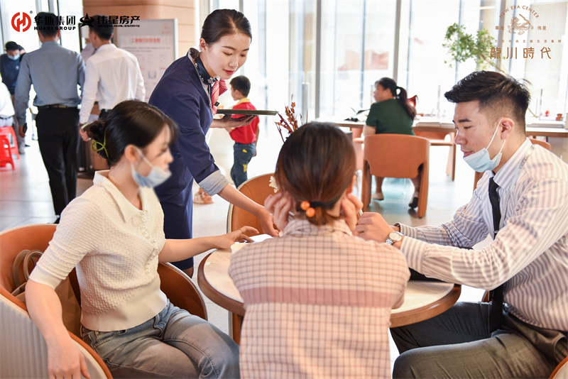 在示范區(qū)開放之前,華地偉星·龍川時(shí)代就受到市場(chǎng)的強(qiáng)烈關(guān)注和高度追捧。客戶預(yù)約爆滿,本次開放現(xiàn)場(chǎng)進(jìn)行分流參觀,但還是難擋客戶的熱情。除去美麗景致外,華地偉星·龍川時(shí)代與客戶之間的美好緣分也在延展,來來往往人流如織,置業(yè)顧問用他們的熱情耐心地接待每一組訪客。每一組客戶到來,他們都主動(dòng)上前,一絲不茍地為他們引導(dǎo)至內(nèi)場(chǎng)、細(xì)心講解,客戶滿意的笑容是館內(nèi)最美好的風(fēng)景。