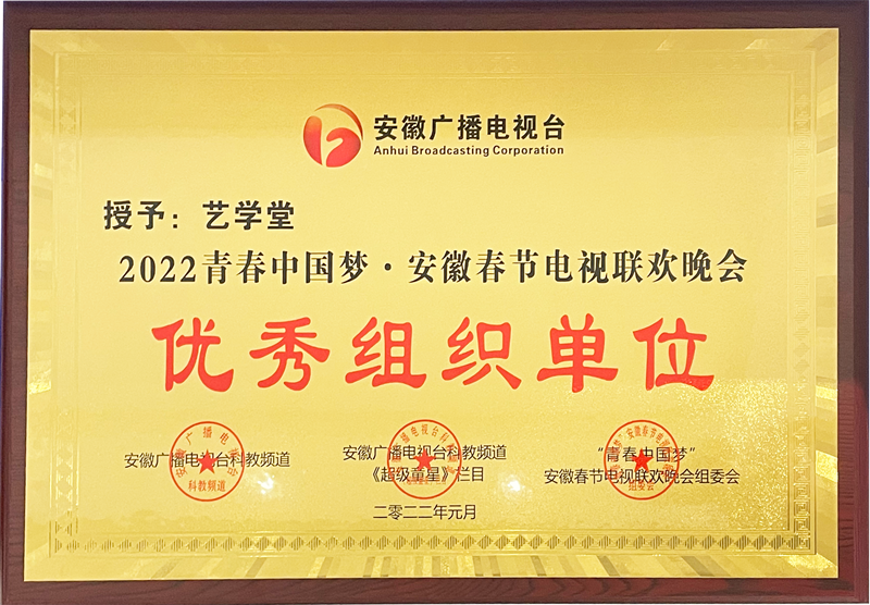 合肥藝學(xué)堂喜獲安徽省少兒春晚“優(yōu)秀組織單位”稱號