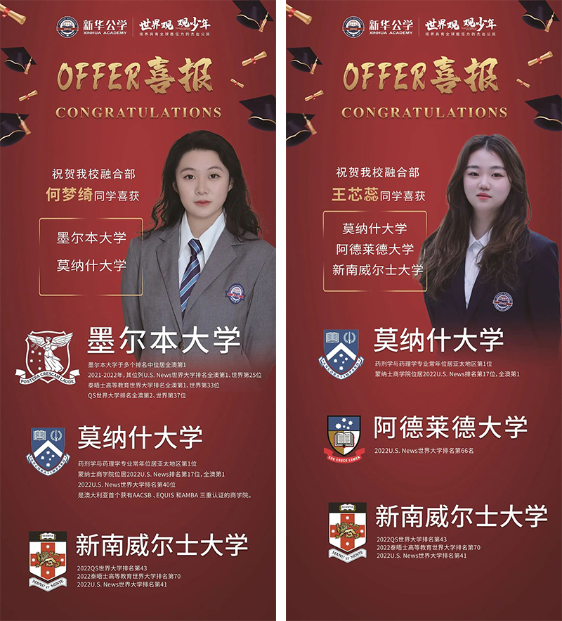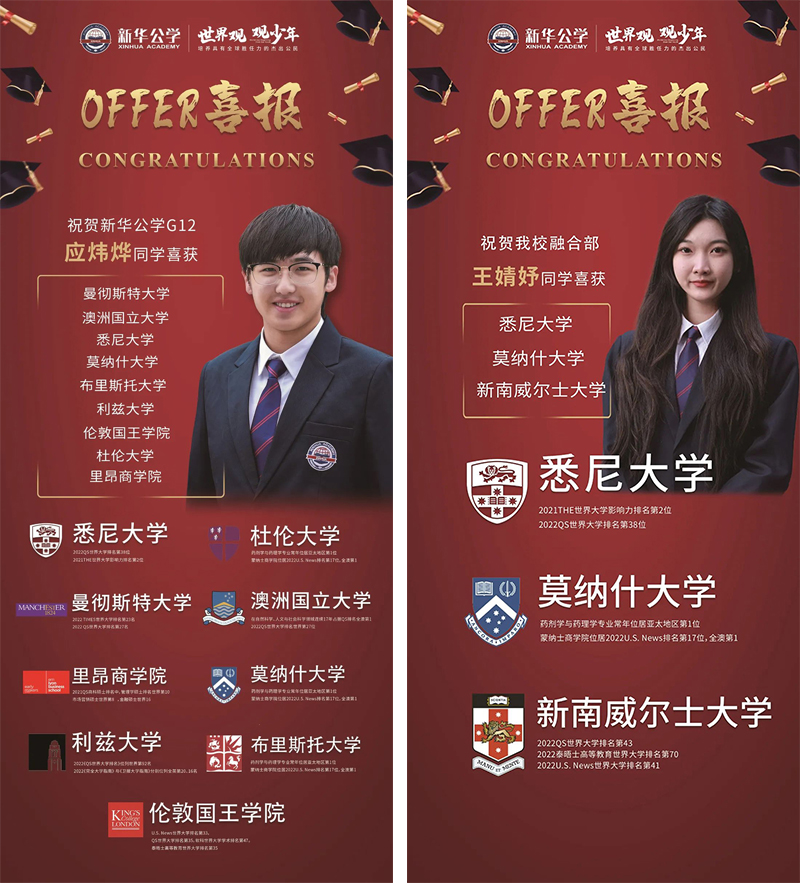 在競爭異常激烈的申請季里,新華學子表現不俗,收獲了豐碩的成果。2021-2022學年新華公學迎來首屆12年級畢業生,9名學生一共收獲36Offer,其中不乏世界TOP10名校。