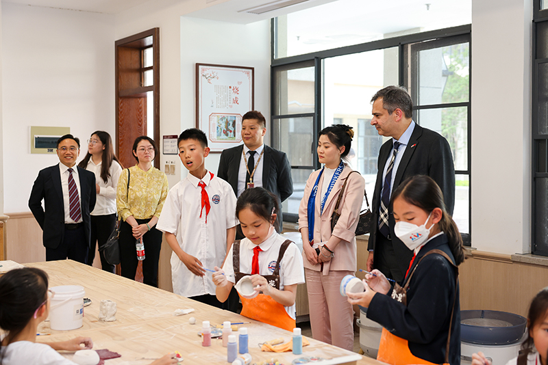 隨后,施睿耀先生一行參觀校園,對我校如公園般優(yōu)雅的校園環(huán)境贊不絕口,在特色場館及功能教室中,學(xué)生講解員用流利的英文全面而詳細(xì)地進(jìn)行了介紹,展現(xiàn)了我校學(xué)子“高學(xué)養(yǎng)”“高素養(yǎng)”的雅韻風(fēng)采。