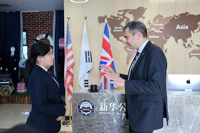 此次英國公使銜參贊一行訪問新華公學(xué),施睿耀先生表示“教育在增強人與人之間的聯(lián)系方面發(fā)揮著關(guān)鍵作用,這些聯(lián)系是英國與中國之間牢固且充滿活力的關(guān)系的核心。我相信,我們將繼續(xù)互相學(xué)習(xí),必將能推動促成更多高質(zhì)量的教育合作。”