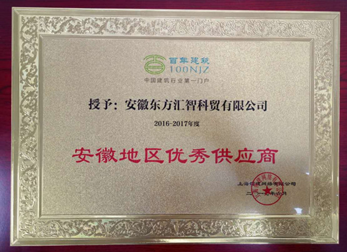 安徽東方匯智科貿(mào)有限公司榮獲安徽地區(qū)優(yōu)秀供應商稱號