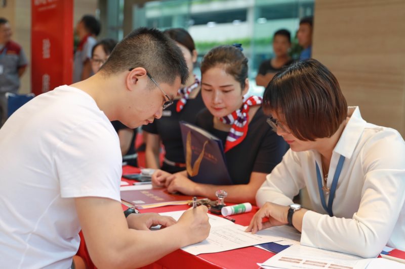 交付現場,紅毯相迎,鮮花在側,華地·金融中心寫字樓挺拔而上,氣勢磅礴。嚴格有序的交付流程、認真負責的工作態度、真誠用心的貼心服務,贏得了業主們的充分認可。驗房過程中,業主們對工程質量及內部配備的現代化設備表示十分滿意。針對業主們普遍關心的裝修、物業管理等問題,工作人員耐心傾聽并予以解答。