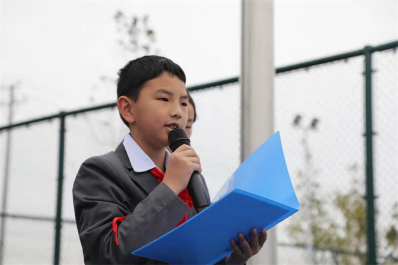 五年級老隊員代表秦宇恒同學希望新隊員懂禮儀、會學習,從加入少先隊的第一天開始就努力成為一名優秀的少先隊員,為學校爭光,為紅領巾添彩!