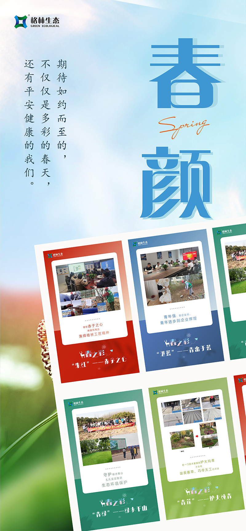 我們牢記“綠水青山就是金山銀山”的生態(tài)理念,每年開展植樹活動(dòng),今年共植三百余株欒樹和紅葉石楠球,讓綠色在大地蔓延;與此同時(shí),格林生態(tài)積極履行社會(huì)責(zé)任,強(qiáng)化集約節(jié)約理念,與合作伙伴協(xié)同做好污水處理改善,促進(jìn)水生態(tài)環(huán)境持續(xù)改善,努力實(shí)現(xiàn)經(jīng)濟(jì)發(fā)展和生態(tài)環(huán)保雙贏目標(biāo)。現(xiàn)如今正是楊柳青青、草長(zhǎng)鶯飛之時(shí),傲人的青山綠水正在以秀美優(yōu)雅的姿態(tài)展現(xiàn)出來!