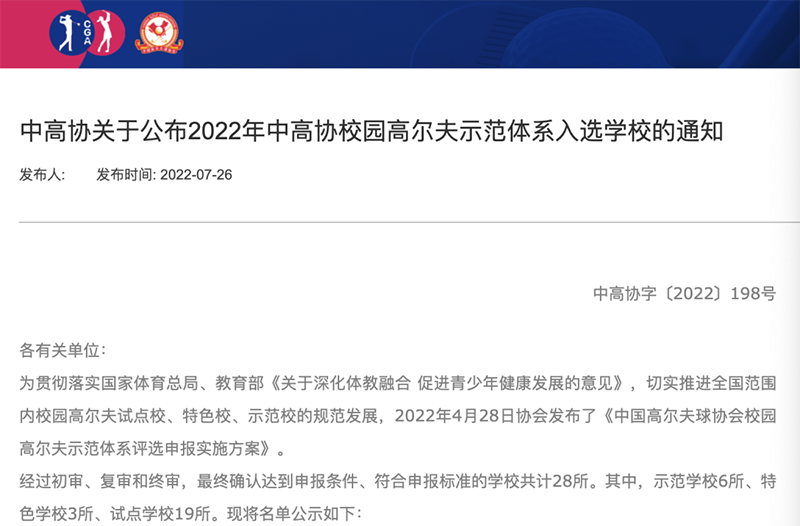 據(jù)中國(guó)高爾夫球協(xié)會(huì)2022726日在官網(wǎng)公布的中高協(xié)字〔2022198號(hào)文件所示:合肥新華公學(xué)成為2022年全國(guó)校園高爾夫試點(diǎn)學(xué)校,同時(shí)也是安徽唯一一所試點(diǎn)學(xué)校。