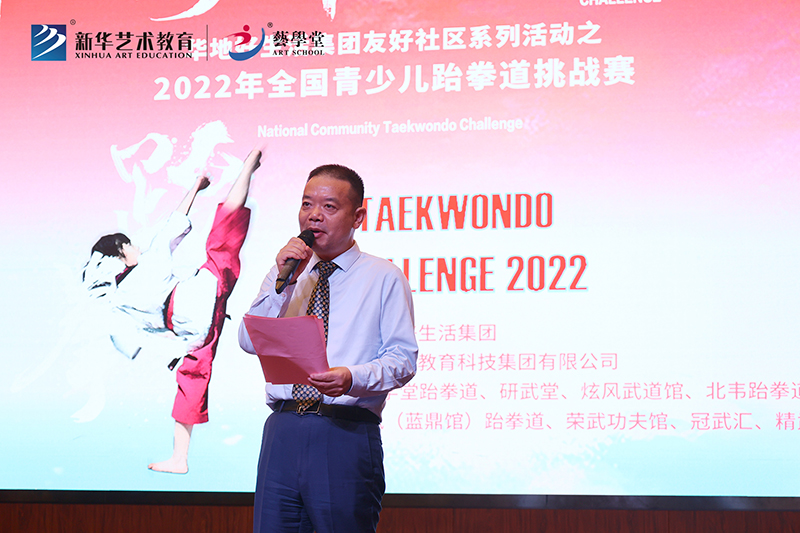 活動(dòng)伊始,新華控股集團(tuán)副總裁、華地好生活集團(tuán)董事長管玉社做開幕動(dòng)員,他表示:“華地好生活集團(tuán)始終以“用心筑造美好生活”為服務(wù)愿景,用心構(gòu)筑美好社區(qū)服務(wù)體系,通過兒童友好和教育友好社區(qū)服務(wù),不斷為青少兒成長提供多維助力。此次華地好生活集團(tuán)聯(lián)合藝學(xué)堂充分發(fā)揮雙方優(yōu)勢開展跆拳道挑戰(zhàn)賽,不僅為廣大青少兒提供更多藝術(shù)展示機(jī)會,同時(shí),也致力于發(fā)揚(yáng)團(tuán)結(jié)、友誼、進(jìn)步的體育精神,展現(xiàn)青少兒時(shí)代風(fēng)采。”