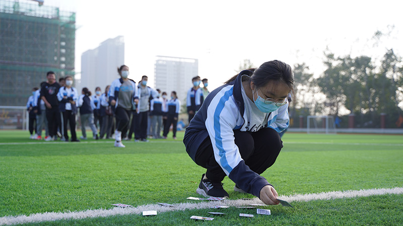 各參賽隊員需要在紙牌背面朝上的的情況下,按從A到Q的順序翻出紙牌。同學們盡力的奔跑著,智慧的翻著撲克牌,互相加油鼓勁,最終找到游戲密碼,理解有效的溝通對于團隊勝利的作用。