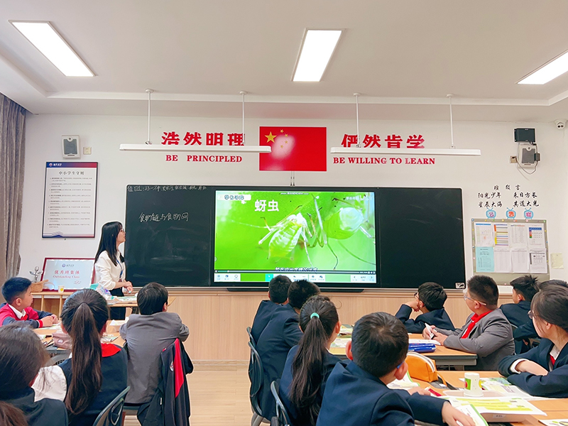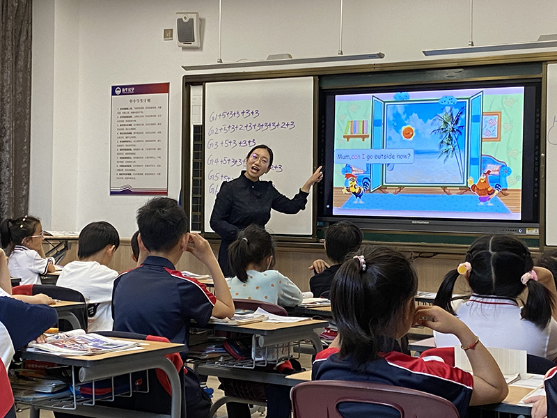 喬斌老師評課:在學習復習了所有天氣單詞后,戴老師呈現PEP課本中的句型Can I go outside?并增加了PU中的人物,進行了有趣的融合,孩子們興致高昂,引導學生模仿人物的語氣來進行配音對話,并在完成后及時進行加分和獎勵,激發了學生的興致,發展學生的思維能力,也讓孩子們能夠在情境中學習單詞,加強語言的運用。最后,戴老師對本節課的內容進行了鞏固和升華,拓展了一些活動的短語,鼓勵學生們進行不同天氣的活動匹配,孩子們動手動腦,拓展了知識的廣度,也給學生們了進行了當堂檢測,有效檢測鞏固了本節課的知識。