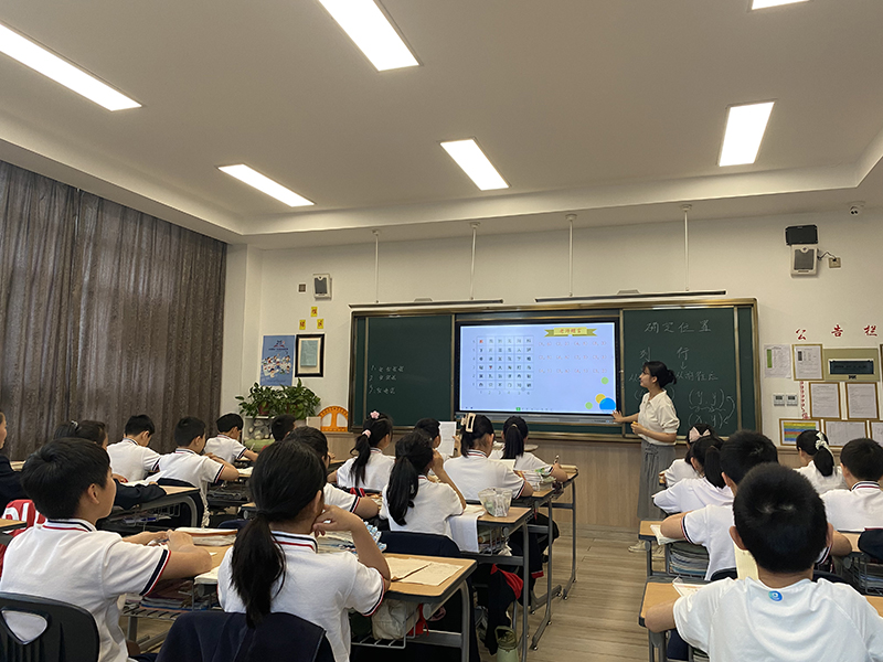 李亞芬老師帶來確定位置》。李老師從學生生活實際入手采用學生自主探究合作交流為主教師點撥引導為輔的策略讓學生在生活實例中感知在積極思辨中發現在具體運用中理解學習數對的必要性