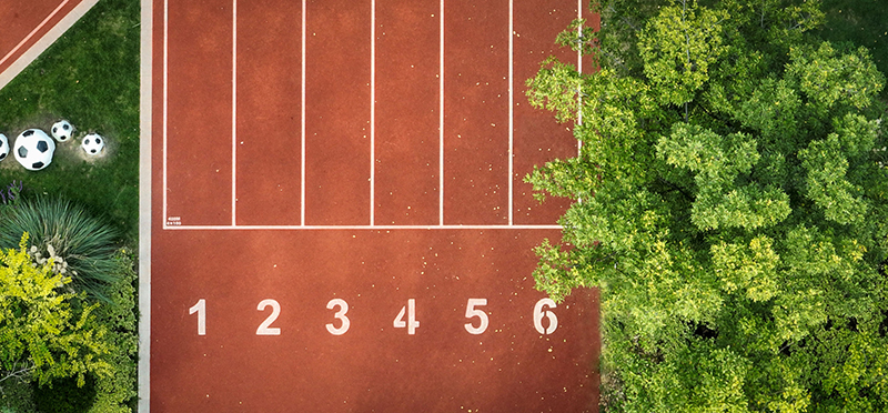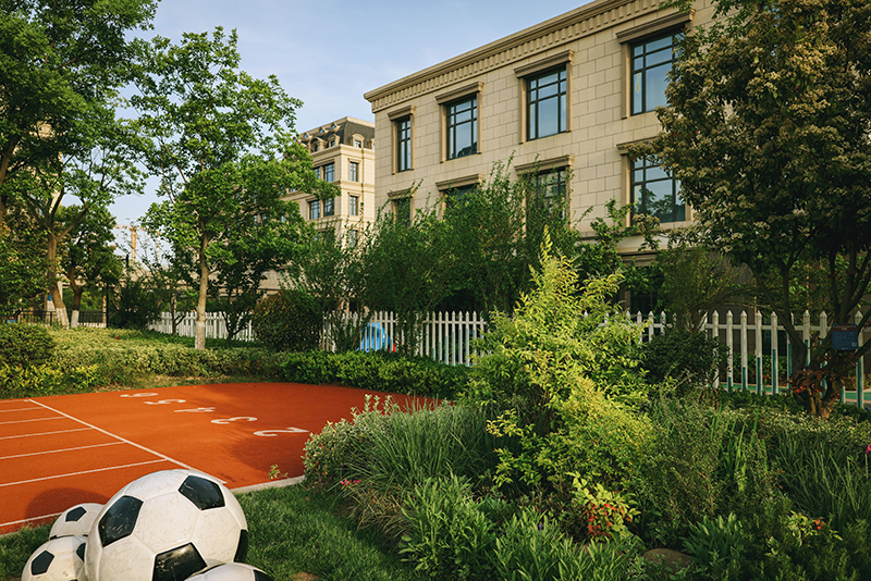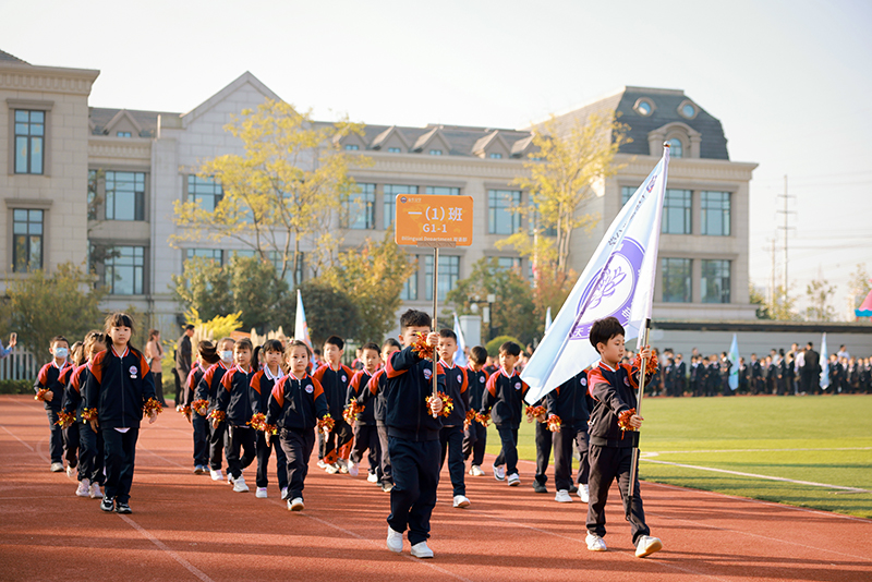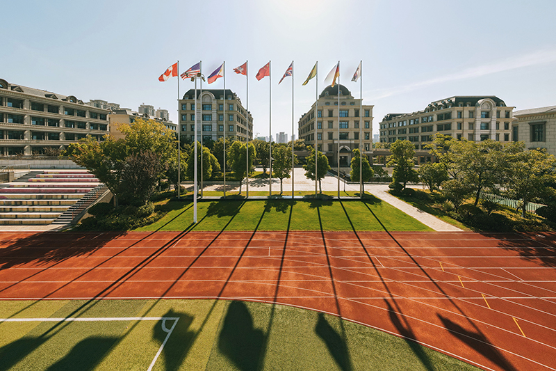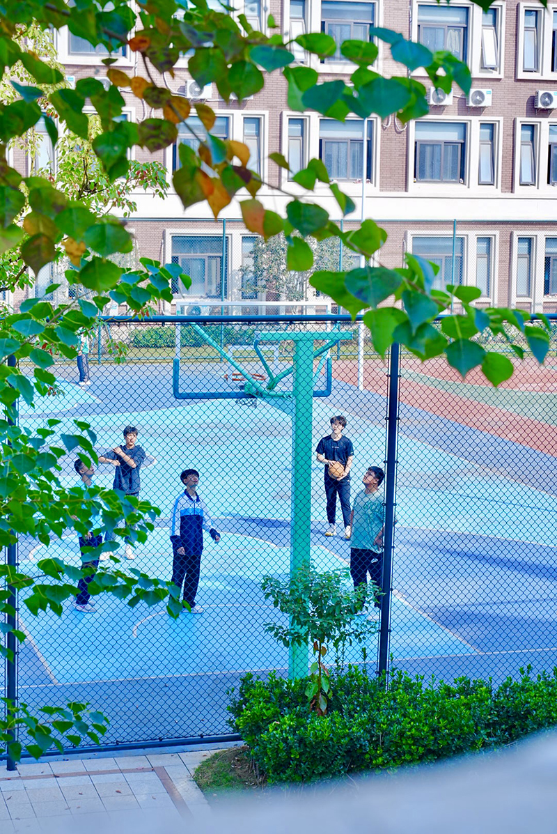 橙光流淌在朝氣蓬勃的操場上