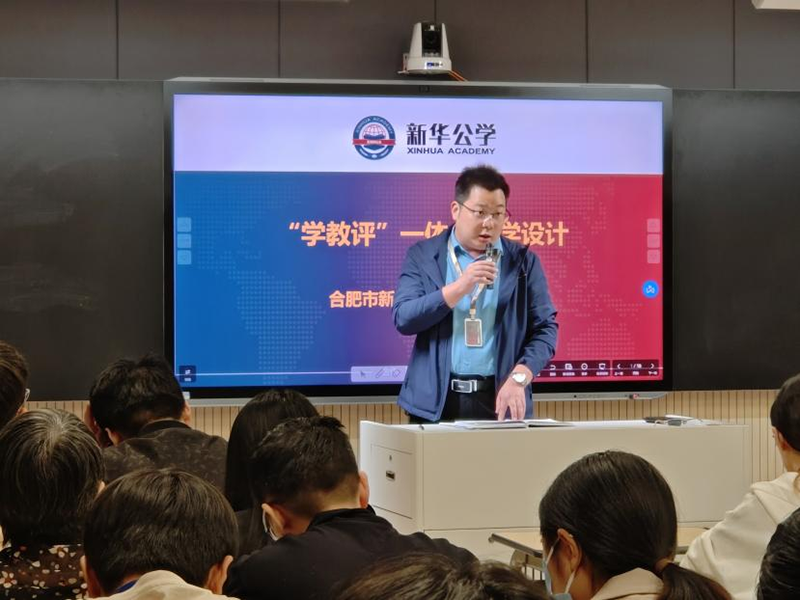 會議上,為提高校內學科教師學科素養,并根據雙語部高中近期的教育教學情況,雙語部中學尹漸平校長開展了一場“‘學教評’一體化教學設計”的專題講座。尹校長長期深入一線教學,講座內容深入淺出,運用詳實的課例,對如何實現“學教評”一體化教學設計進行了詳細的講解。專題講座分為“什么是學教評一致性教學設計”“教學設計要解決三個問題”“教學目標的確立和表述”“教學設計”“教學評價”“核心素養”六個部分