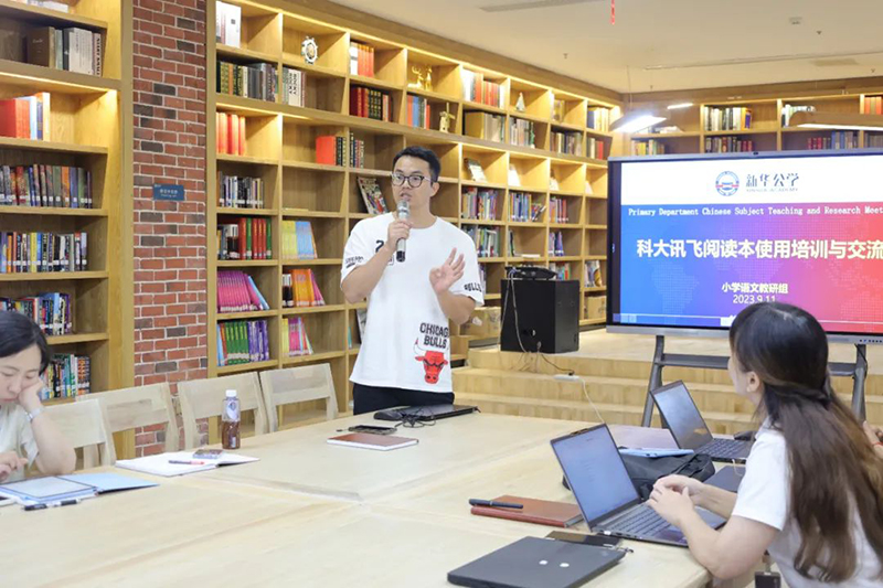 為了更好推進智慧校園建設,打造更加便捷,智能的教育環境,新華公學與科大訊飛于今年7月攜手打造智慧學習、智慧閱讀的樣板校。新華公學雙語部小學為全面提升語文教師信息技術素養,提高智慧課堂應用水平,推動智慧課堂與學科教育深度融合,9月11日上午,開展了科大訊飛AI語文本使用專題培訓活動。
