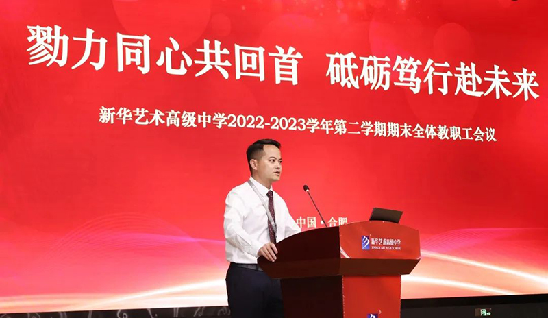 盛情夏季,桃李芬芳;潛心育人,賡續(xù)前行。為發(fā)揮黨建的引領(lǐng)作用,推動(dòng)學(xué)校工作高質(zhì)量發(fā)展,凝聚新征程再出發(fā)的奮進(jìn)力量,7月11日下午,新華藝術(shù)高級(jí)中學(xué)全體教職員工歡聚一堂,隆重召開(kāi)以“勠力同心共回首,砥礪篤行赴未來(lái)”為主題的2022-2023學(xué)年第二學(xué)期期末全體教職工會(huì)議。新華藝術(shù)高級(jí)中學(xué)校長(zhǎng)邵忠德,副校長(zhǎng)蔡賢滿(mǎn)、李?lèi)?ài)國(guó)、吳東、方明生等領(lǐng)導(dǎo)及全體教職員工參加,大會(huì)由黨政辦公室主任夏娟娟主持。